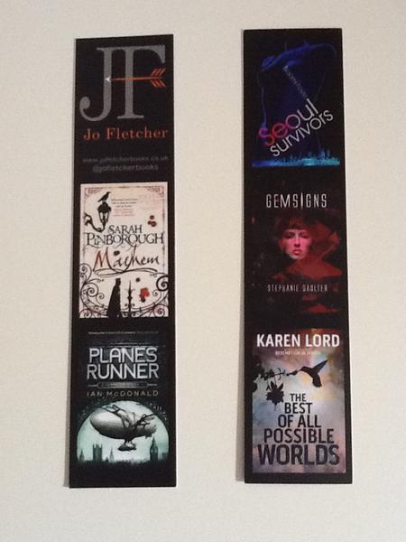 It was at the JFB 1st-anniversary party on Saturday night, surrounded by the beautiful books they’ve published over the past year and the beautiful bookmarks showcasing some of the volumes – including mine – coming next year. I started chatting to another of the authors whose novel Planesrunner is also featured on said bookmark. He was a convivial bloke named Ian McDonald, possessed of a thick brogue, a battered black leather jacket and amusingly wry commentary about books that do well in the US but not the UK and vice versa, for no reason that anyone can work out. There was something very familiar about him, though we clearly had never met before, and I blame the wine for me not paying sufficient attention to that fact at the time. He politely asked about me, and I gushed forth – as I’m afraid I may have done rather a lot – about how amazed and lucky I felt to be an about-to-be-published writer, how quickly and unexpectedly it had all happened, that a year ago I hadn’t even finished writing the novel whose cover art we were admiring. He blinked in what looked like genuine surprise and complimented me, something along the lines of: that’s pretty unusual, must be a really good book. So they tell me, I said, but let’s see what the punters think when it comes time to drop a tenner on it at Waterstones. And we had a chuckle, and shortly after that the currents of the party pulled us in different directions, as they do, and I didn’t see him again.